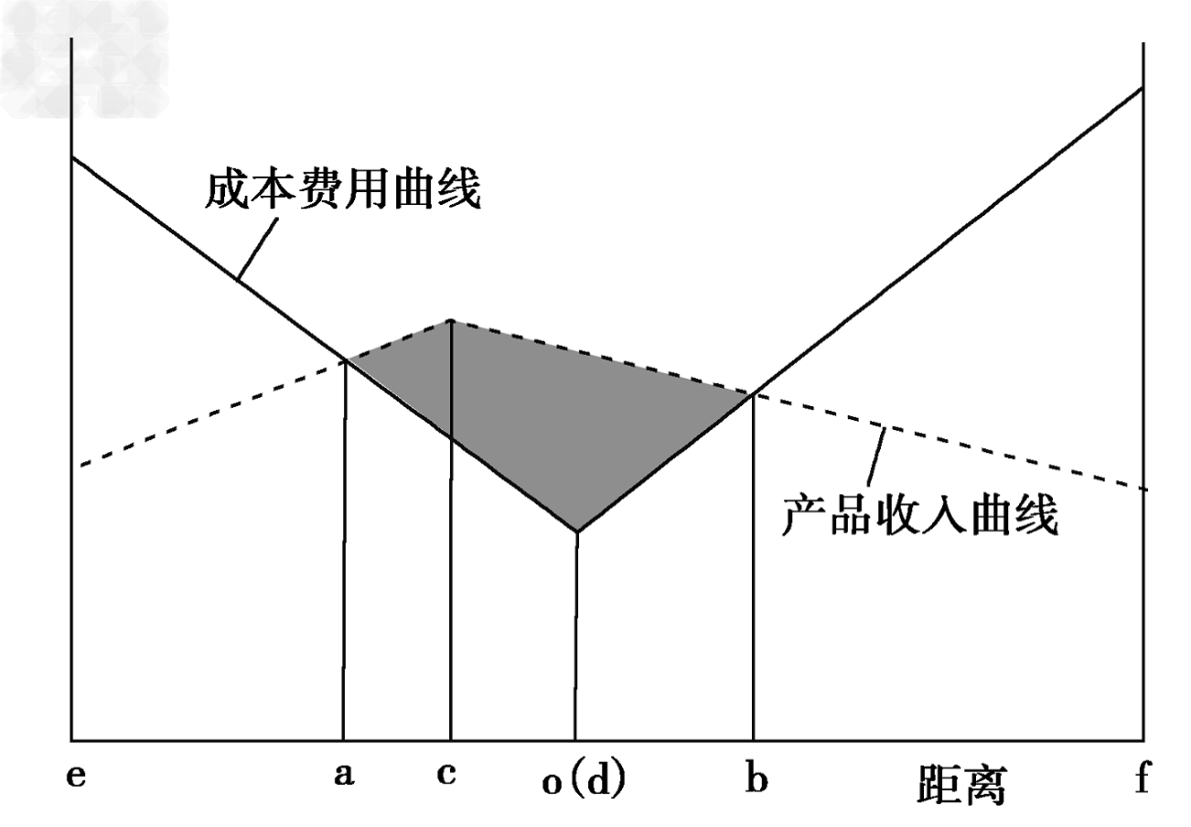 3、单选题 下图是某类工业“收益性空间界限的区位模型”图,企业收益等于企业产品收入减去成本费用。据此回答2题。