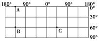 【小题2】从B到C点的最短航线应经南极点上空,其飞行方向应为先正南,再正北。