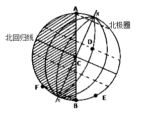 (1)这一天为北半球的?(节气);ACB线是?(晨、昏)线;此时,太阳直射点的地理坐标是??,?。