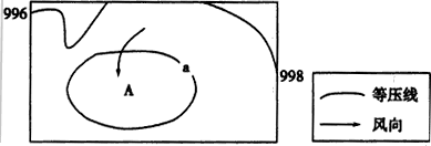 4、单选题 读近地面等压线分布图(下图)(单位:百帕),判断下列说法正确的是