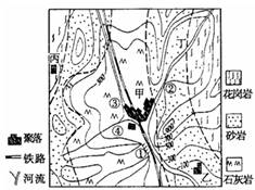 小题2:若要在图中选建水利工程,以解决城市缺水问题,以下几个地点最优的是?
