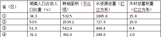 A.甲省(区)西部是该省种植业集中地区 B.乙省(区)是我国著名的粮食产区 C.丙省(区)南部农业耕作制度一年三熟 D.丁省(区)以灌溉农业和牧业为主 |