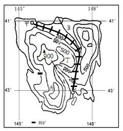 (2)(6分)图乙中B位于            省,图中的等值线的类型为              ,