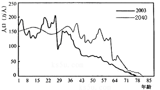 小题2:2040年与2003年相比,老年人口的比重上升,所以死亡率有可能上升。所以本题选择B选项。