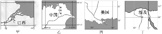A.甲、乙、丙、丁四条大河注入相同的海洋