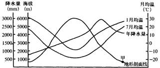 5、单选题 图示意某地气温、年降水量随地形分布及地形剖面。读图,完成下列各题。