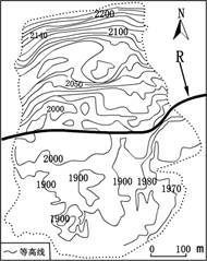 1.河流R的流向为2.若此图表示某类地质灾害发生后的地形状况,此灾害最可能为
