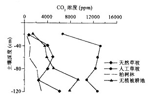 3、单选题  下图为“云南路南石林不同植被下土壤空气中CO2浓度示意图”,读图完成1~2题。