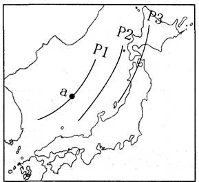 1.图示为冬季等压线图,此时亚欧大陆为高压控制。日本岛在亚欧大陆东部,处在蒙古-西伯利亚高压的东侧,由此判断气压值Pl>P2>P3。选C正确。