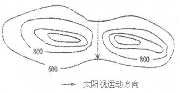 小题1:图示地区著名的旅游景点“双龙戏珠”,最佳观赏时段为9月20日至24日,根据太阳视运动方向自东向西运行。说明最佳观赏位置在东部,说明图示地区的山脉呈南北走向。
