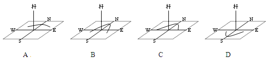 【小题2】乌鲁木齐当天昼长夜短,日出东北方向,日落西北方向,正午时太阳在正南方向。所以杆影末端的移动轨迹应该是从西南到北再到东南方向,且运行弧度大于180?,故选B。