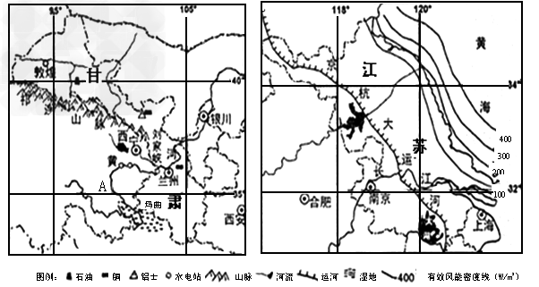 2.甘肃省有何能源优势?江苏省有效风能有何分布特点?分析江苏省开发利用风能的主要原因。