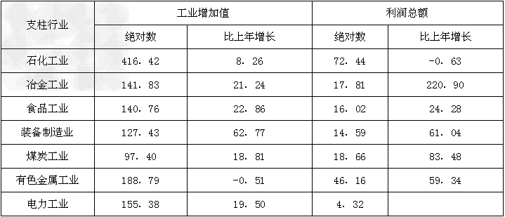 材料四:2010年甘肃省重点支柱行业主要经济指标(单位:亿元、%)