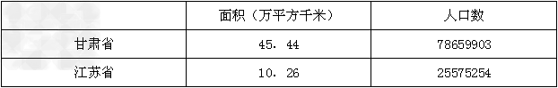 材料三:甘肃省和江苏省面积与人口(2010年人口普查数据)比较