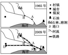 3、单选题 下图为某地1965年和2009年地理简图,读图回答下列各题。