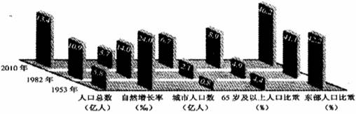 1、多选题  读中国人口普查数据统计示意图,回答下列各题。