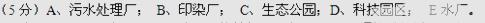 (3)若在图中B处布局服装厂,是否合理??,其理由是?。(3分) (4)若在图中D处建自来水厂,是否合理??,其理由是?。(3分) 参考答案: 本题解析: 本题难度:一般 2、单选题 下图为“某工业城市工业发展规划图”,计划在图中四个区位布局四种不同污染类型的工厂。据此完成(1)—(2)题。 参考答案:(1)B(2)A 本题解析:(1)乙类为水污染工业,主要有电镀厂、皮革厂、造纸厂等。 本题难度:一般 3、综合题 (5分)某城市将建印染厂、水厂、污水处理厂、科技园区和生态公园。下图中的A、B、C、D、E五处可供选址,该地盛行东风。读下图,在横线上分别填上工厂名称。 参考答案: 本题解析:略 本题难度:简单 4、单选题 下图为“北京主要工业区布局示意图”,甲处为中国“硅谷”中关村,其布局的主导因素是( ) 参考答案:D 本题解析:高新技术工业的主导区位因素是科技、人才。 本题难度:简单 5、单选题 下图为“美国硅谷某电脑公司产品产业链关联图”。读图完成下列问题。 |