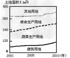1、单选题 下图是“某城市城区和郊区土地利用变化情况图”。读图完成1—2题。