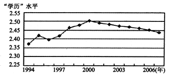 4、单选题 工业产品的“学历"水平是指生产工业产品的工人平均学历水平,是在对学历的5个等级(初中及以下、高中、大专、本科、研究生及以上)分别赋以1、3、5、7、9后统计而得。下图示意我国工业产品“学历”水平的变化,读图完成下列各题。?