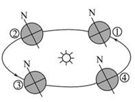 【小题1】当“神舟八号”飞船发射升空时,地球在公转轨道上的位置最接近左图中的( )