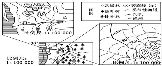 【小题2】按照“地势平坦、取水方便、无水患洪灾之地建立聚落”的原则,甲地地形起伏大,A错。乙地地形平坦开阔,地势较高,没有洪水灾害,距河流较近,取水方便,B对。丙地洪水灾害较多,C错。丁地位于岛屿上,取水不便,D错。