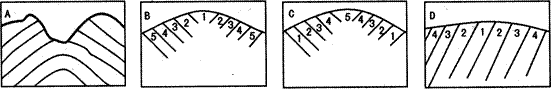 【小题1】读图,根据右侧图分析,P处位于河流出山口,在距出山口近处沉积层厚,远处较薄,属于冲积扇地貌的特征,B对。河漫滩分布在河流沿岸,顺河道延伸,A错。三角洲位于河流入海口处,C错。河流侵蚀不能形成平原,D错。