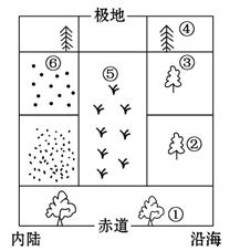 A.内蒙古高原、华北平原 B.塔里木盆地、长江中下游平原 C.青藏高原、云贵高原 D.云贵高原、黄土高原 3、单选题 下图中非地带性沙漠形成的主导因素是 4、综合题 下图为北半球陆地自然带分布图,读图回答:(10分) 5、综合题 读自然景观地域分异示意图,回答问题。(12分) |