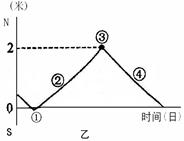 5、单选题 某学校(1100E)地理兴趣小组在平地上用立竿测影的方法,逐日测验算正午太阳高度。如图甲,垂直竖立一根2米长的竿OP,正午时测得竿影长OP",通过tanα=OP/OP"算出正午太阳高度为α。据此回答问题。
