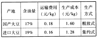 3、单选题 东北平原是我国大豆的主产区,但近年来,由于进口大豆的冲击,市价大幅下降,由原来的2.2元/kg降到现在约1.6元/kg,降幅近30%,由于价格下跌,产品滞销,豆农的生产积极性大受打击,纷纷减产或转产,我国东北大豆生产呈现萎缩之势。读国产大豆与进口大豆比较表和下图,回答1—3题。