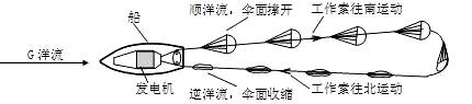 4、单选题 伞式洋流发电是通过“伞”带动工作索周而复始的运动,进而带动发电机运转发电。下图为某海域的伞式洋流发电站示意图,读图回答下列各小题。