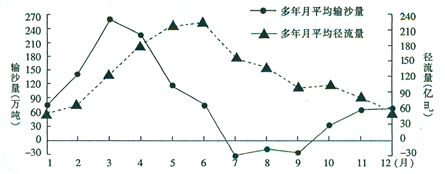 2、单选题 位于长江中游的鄱阳湖是吞吐型湖泊,年内各月吞吐泥沙和水量很不均匀,2006年后三峡水库蓄水,也影响了鄱阳湖对泥沙和水量吞吐。下图为湖口站多年平均输沙量和径流量分布图。读图3,完成下列小题。 |
