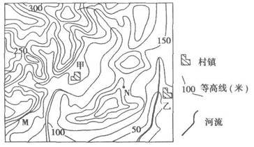 【小题3】如陡崖M在甲村正南方,则可知乙村旁的河流大致流向是( )