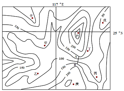 B.甲乙丙丁的海拔在100米以上、150米以下