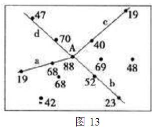 2、单选题 图13中各点为相对于同一基点的实测高程,单位为米,其中A为该区域的最高点。回答图中可能发育小溪的是(?)