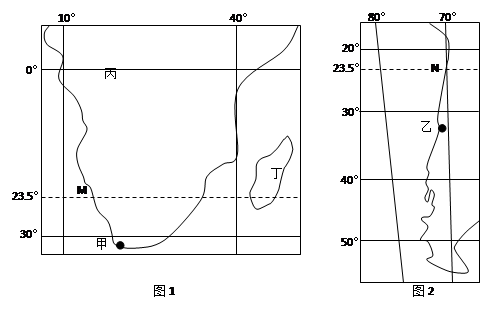 (3)图1中丙地的主要农业地域类型为?,丁地的自然带类型为?,形成该自然带的主要原因是?。(4分)