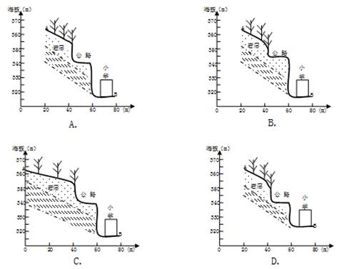 【小题2】读图,该小学距陡崖太近,最可能面临滑坡等自然灾害,B对。不能判断该地位置,无法确定降水、台风的影响,C、D错。图示等高线不是山谷,泥石流灾害较少,A错。