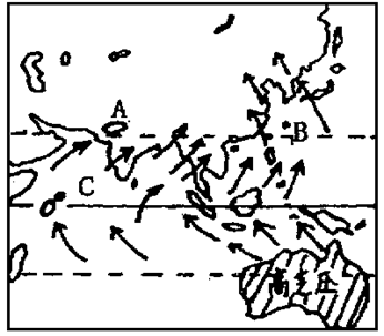 5、综合题 读亚洲某月季风示意图回答: :(10分)