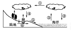①蒸发 ②地表径流 ③水汽输送 ④下渗 ⑤降水 ⑥地下径流