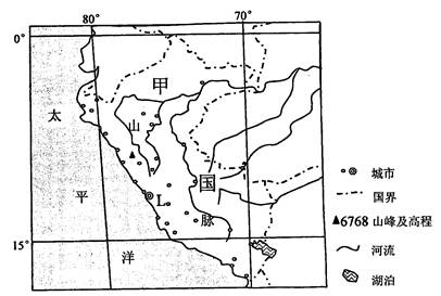 (2)读图,根据经纬度分析,甲国东部位于山地迎风坡,属于热带雨林气候,降水丰沛,水系发达,水资源充足。西部地区为热带沙漠气候,气候干燥。西部沿海人口城市众多,城市用水及农业灌溉用水需求量大。所以调水工程是东水西调,自东向西调水。因东部和西部之间有高大的安第斯山脉,输水线路经过的地区有地形、地质条件复杂,海拔高,缺氧等困难。