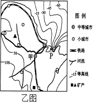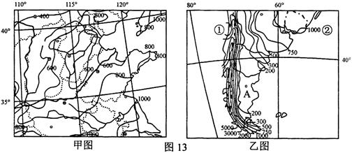 1、综合题 读甲乙两图,图中等值线为年降水量线,回答下列问题。(36分)