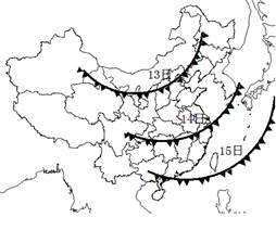 【小题2】图中天气系统为冷锋,受其影响,易出现大风、降温、雨雪等天气,我国冬半年的寒潮也是冷锋天气所造成的一种灾害性天气。冷锋出现时的大风能吹散大气中的污染物,使雾霾出现的概率减小。