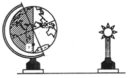3、单选题 将一盏电灯放在桌子上代表太阳,在电灯旁放置一个地球仪代表地球,拨动地球仪模拟地球运动。读图回答下列各题。