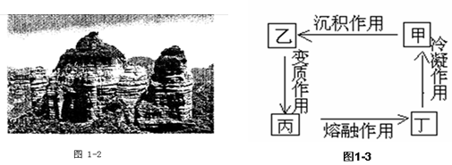 A.甲为石灰岩 B.乙为大理岩 C.丙为大理岩 D.丁为花岗岩 |