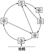 A.① B.② C.④ D.⑥ 参考答案: 本题解析: 本题难度:一般 2、单选题 读地壳物质循环示意图,完成10-12题 |