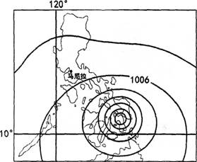 材料二:2013年11月8日,台风“海燕”在菲律宾中部登陆。此次台风造成大规模损坏,死亡人数达数千人。下图示意该日局部地区气压分布状况(等值距为4 hpa)。
