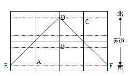 4、综合题 下图为某日太阳光照示意图,图中EDF表示晨昏线,且ED为晨线。