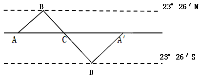 【小题5】2013年10月1日,太阳直射南半球且直射点南移,位于CD之间。