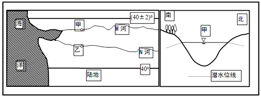 3、单选题 下图中甲、乙分别是M、N两条河流上的水文站,数字代表纬度。据观测发现,M、N河流的径流量有明显的季节变化。据此完成下列各题: