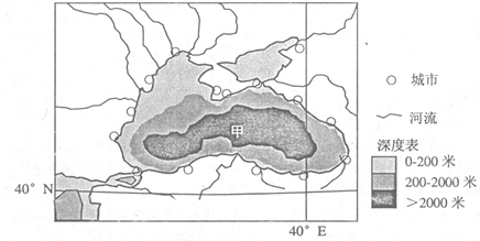 甲海域周围有六个国家和众多城市分布。近年来,该海域的生态环境引发世人更加关注。读图并结合所学知识回答问题。