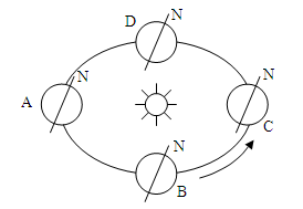 (3)(2分)我国国庆节期间,地球正由公转轨道上?(填字母)移至?(填字母)的过程中。